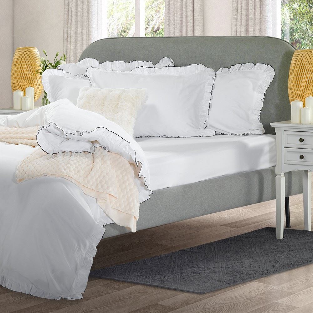 קלאסיקה חלקה עם מלמלה ופספול אפור כהה מסביב. דגם ולריה עשוי בד סאטן כ-220 חוטים באינצ' ,מורכב מ- 60% כותנה 40% במבוק נעים ואיכותי.