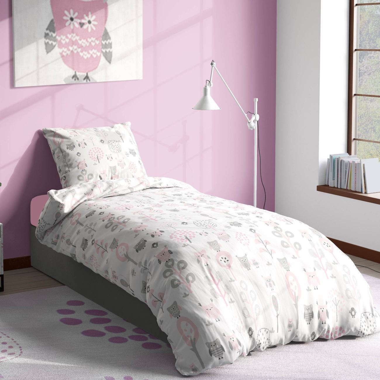 מצעי פלנל יחיד דגם ינשופים ורוד