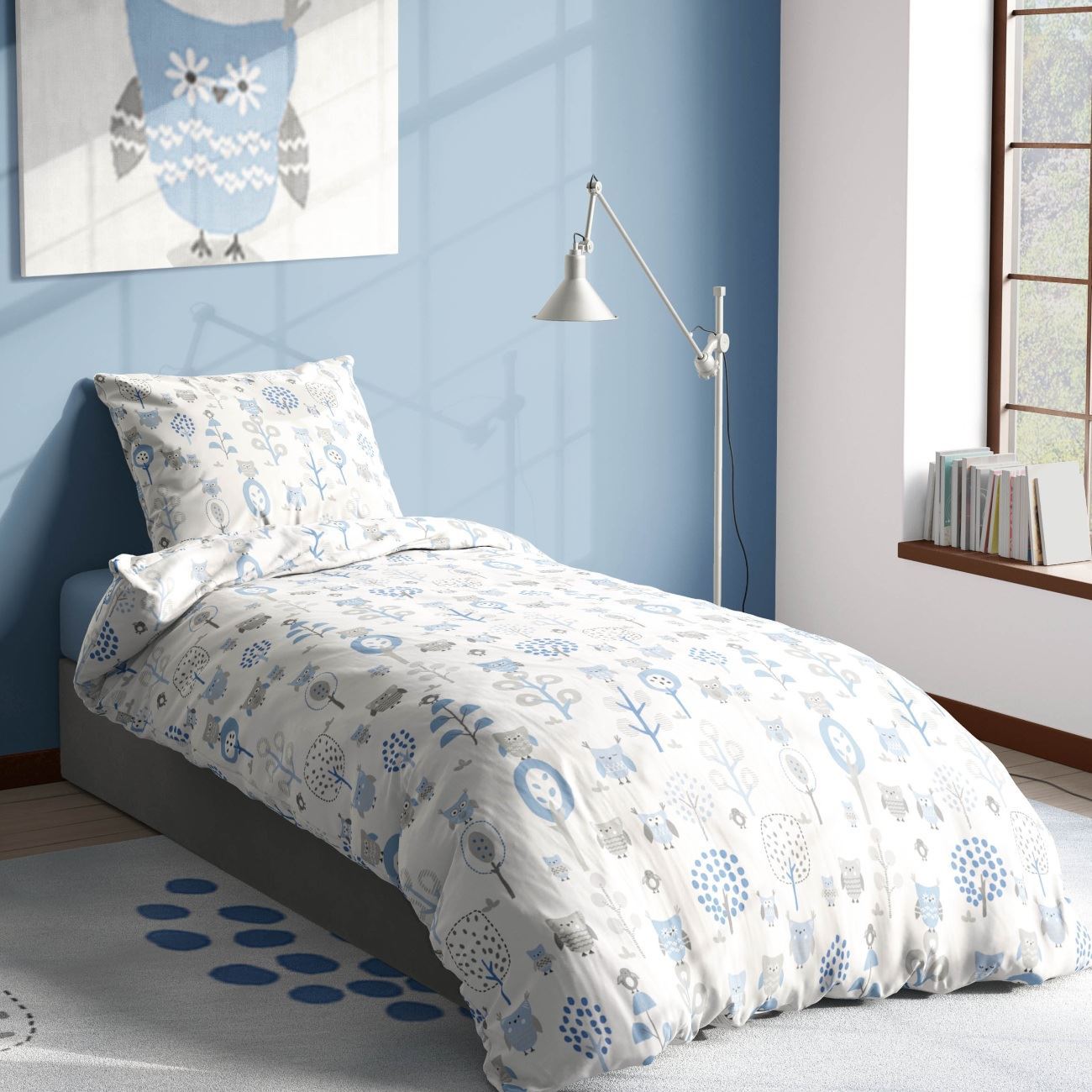 מצעי פלנל יחיד דגם ינשופים תכלת