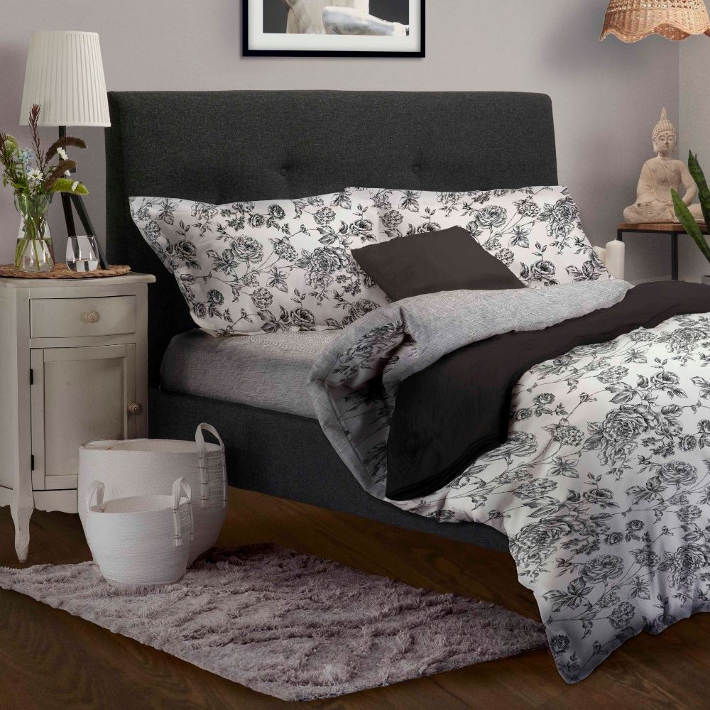 פריחה בגווני שחור, אפור ולבן. דגם ליהי פלנל עשוי 100% כותנה פלנל מחממת ורכה. בד הפלנל מורכב 100% כותנה איכותית, רכה, נעימה ומחממת ומתאים ללילות החורף הקרים.