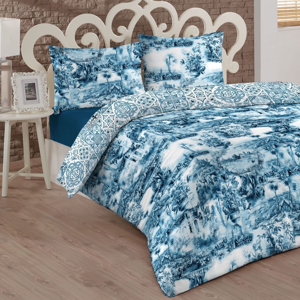 סט למיטה זוגית כולל 2 ציפיות לכרית בגודל 50/70 ס"מ, סדין למזרן בגודל 160/200/30 ס"מ וציפה לשמיכה זוגית בגודל 200/220 ס"מ.