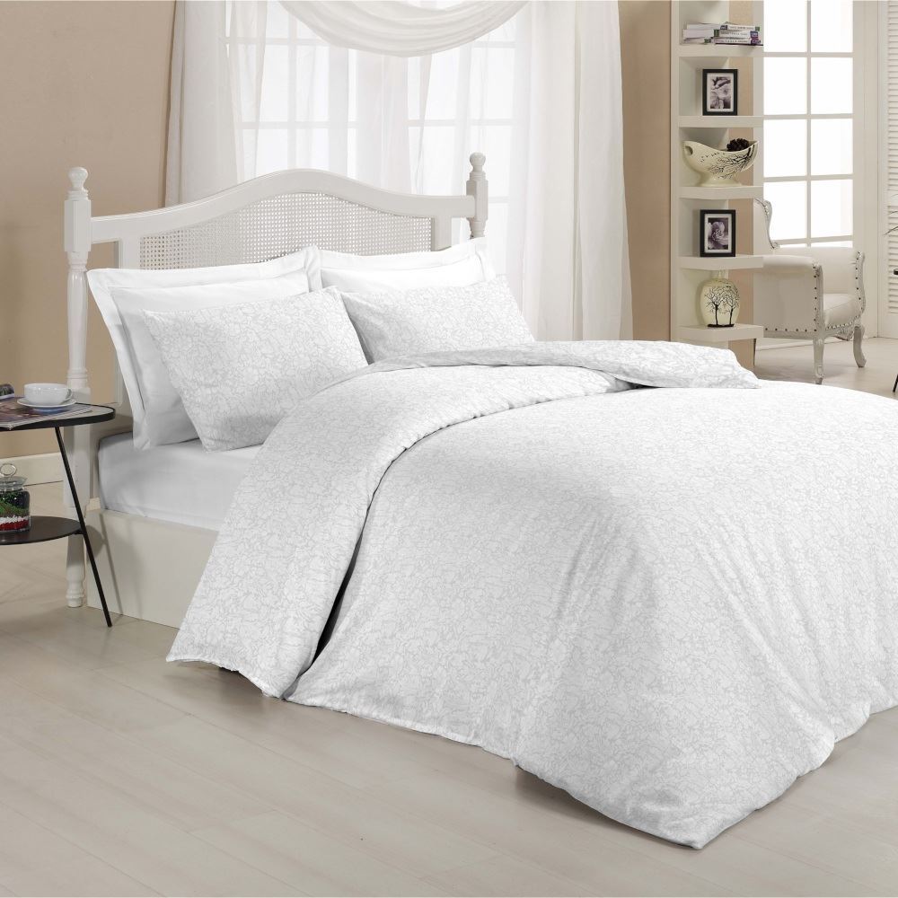 אורנמנט הדפס לבן על רקע לבן. דגם שירלי עשוי 100% כותנה סרוקה.