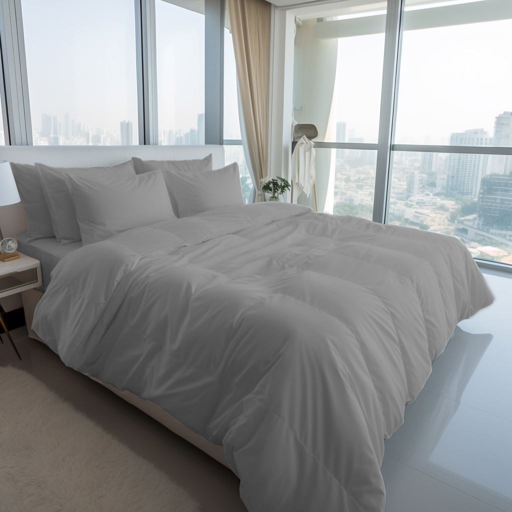 מצעי ג'רסי אפור בהיר עשויים 100% כותנה איכותית, רכה ונעימה.
