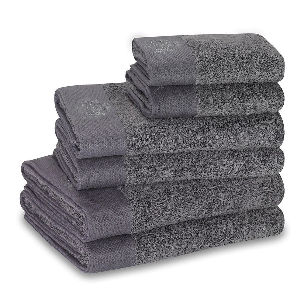 מגבת קינגס אפור כהה King's Collection יוקרתית עשויה 100% כותנה סרוקה איכותית ורכה במיוחד, המגבת במשקל גבוה של כ 650 גרם למ"ר ובעלת רמת ספיגה גבוהה. שול המגבת מעוטר ברקמה יוקרתית.