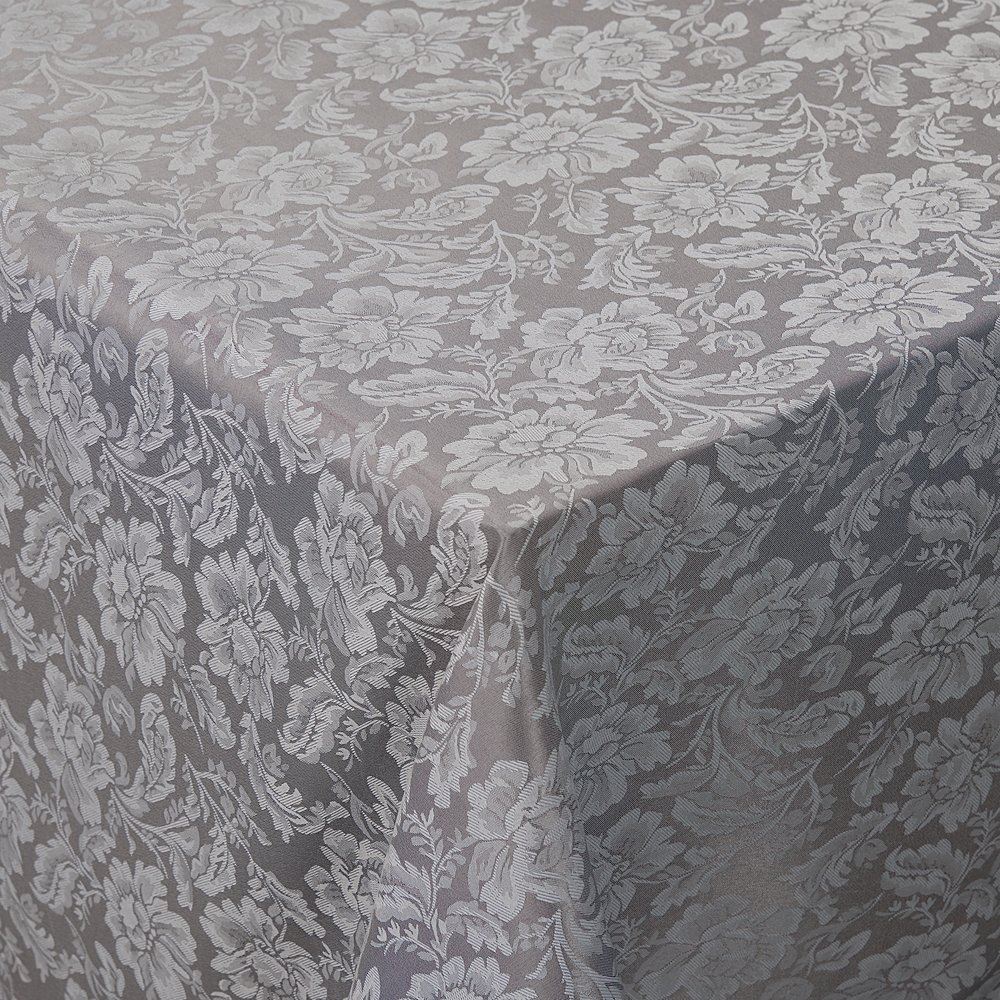 מפת שולחן אפורה מדגם מרגנית באריגת ג'קארד יוקרתית וצפופה.המפה עשויה מבד יוקרתי המורכב מ 100% פוליאסטר ודוחה כתמים.