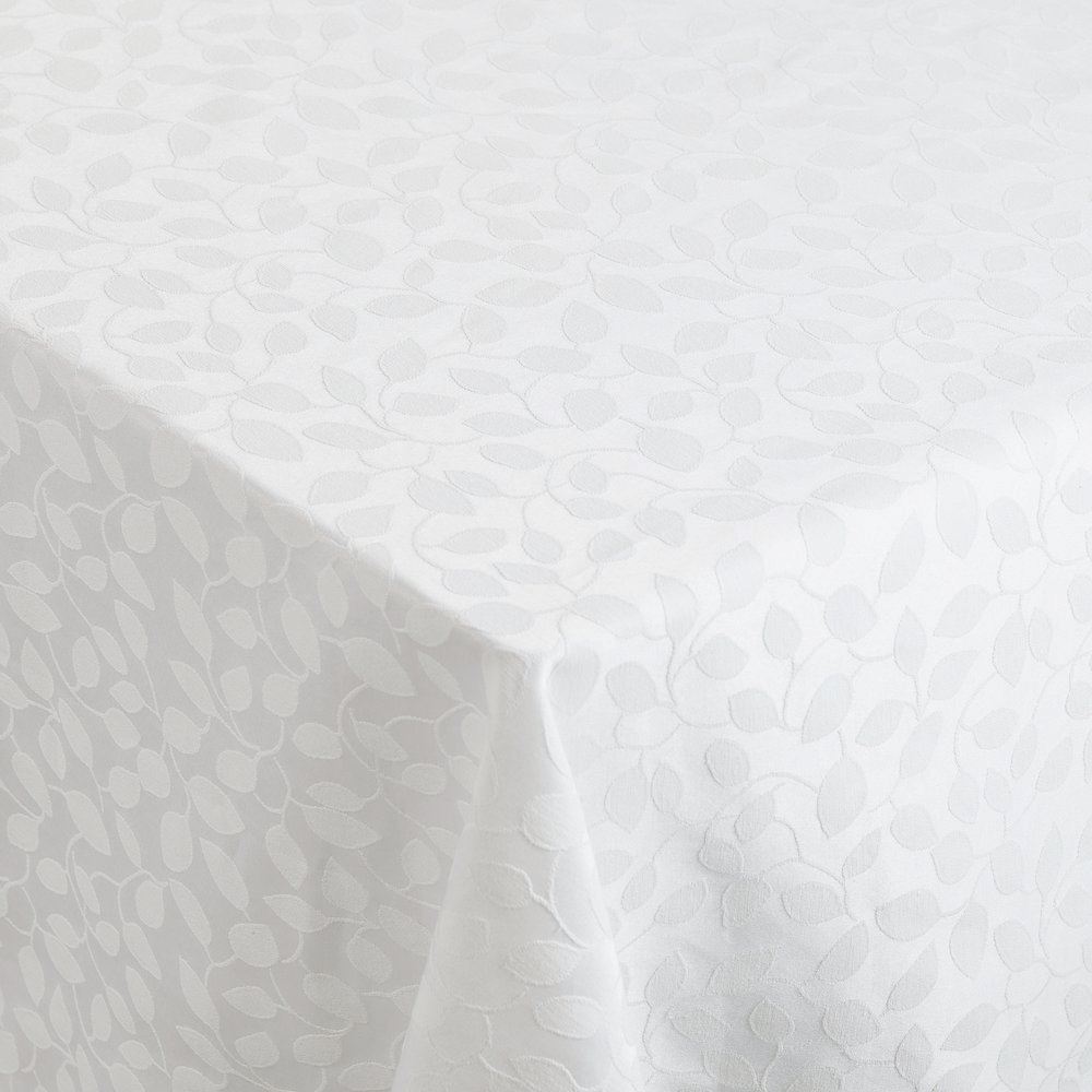 מפת שולחן לבנה מדגם גנואה באריגת ג'קארד יוקרתית וצפופה.המפה עשויה מבד יוקרתי המורכב מ 50% כותנה 50% פוליאסטר