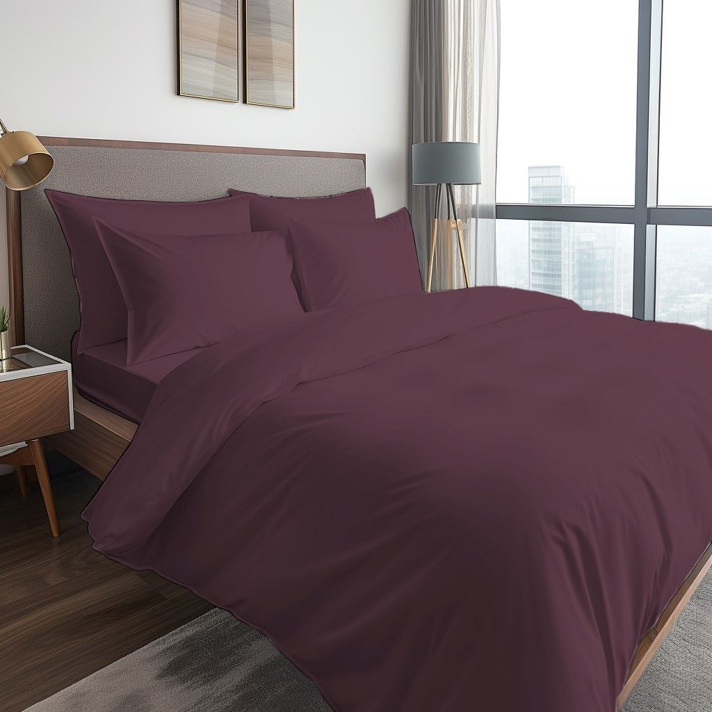 מצעים כותנה פרקל בורדו. בד מצעי הפרקל הינו עמיד ורך ומורכב 100% כותנה טבעית ובצפיפות גבוהה של כ- 200 חוטים באינץ.