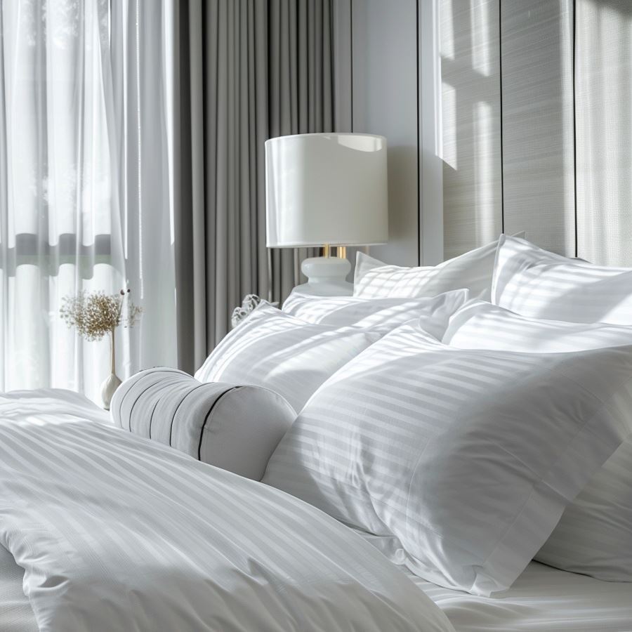 להיות בבית ולהרגיש בבית מלון. סט מצעים פסי סאטן לבנים וקלאסיים עם סדין לבן חלק. דגם מלכת שבא עשוי 100% כותנה מצרית רכה ונעימה בצפיפות של כ 300 חוטים באינץ.
