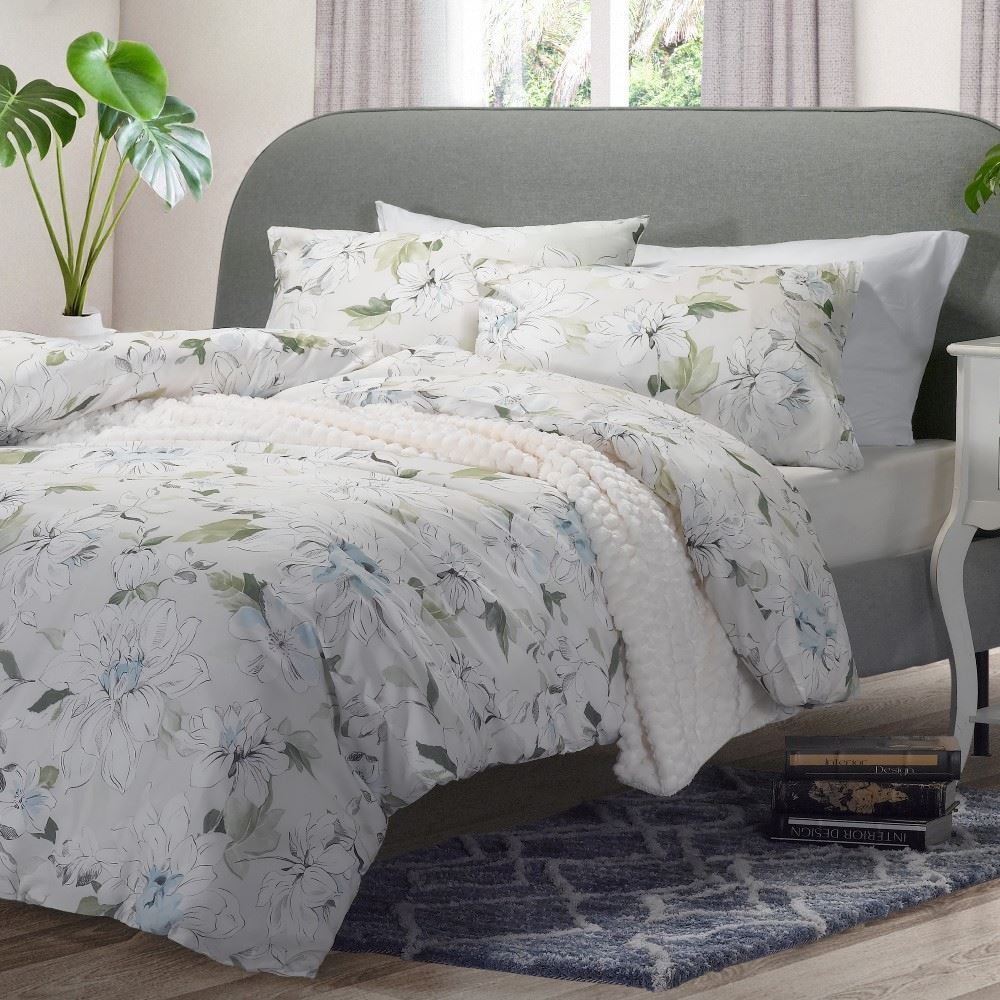 סט למיטה זוגית רחבה כולל 2 ציפיות לכרית בגודל 50/70 ס"מ, סדין למזרן בגודל 180/200/30 ס"מ וציפה לשמיכה זוגית בגודל 200/220 ס"מ.