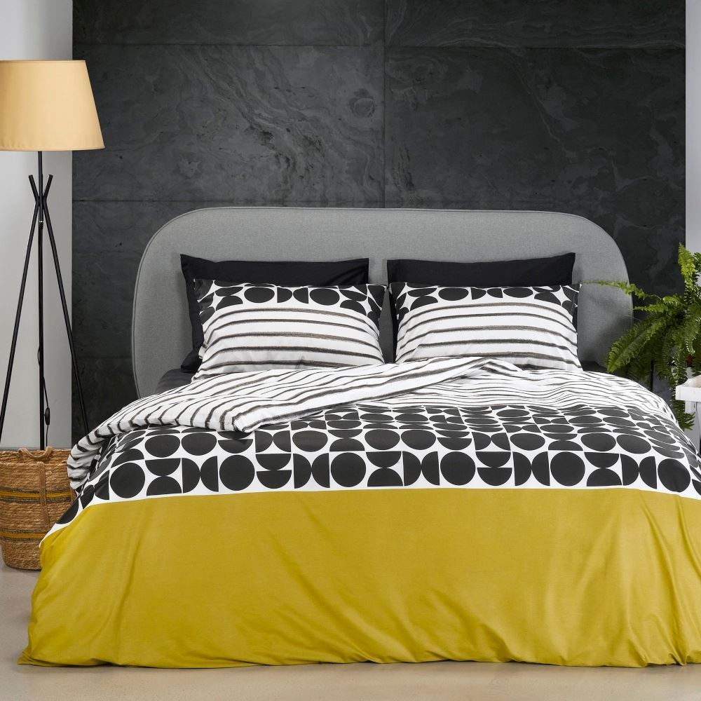 סט למיטה זוגית רחבה כולל 2 ציפיות לכרית בגודל 50/70 ס"מ, סדין למזרן בגודל 180/200/30 ס"מ וציפה לשמיכה זוגית בגודל 200/220 ס"מ.