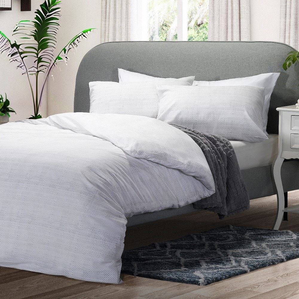 עיצוב גיאומטרי בגווני אפור ולבן. דגם פרגו עשוי 100% כותנה סרוקה רכה ונעימה.