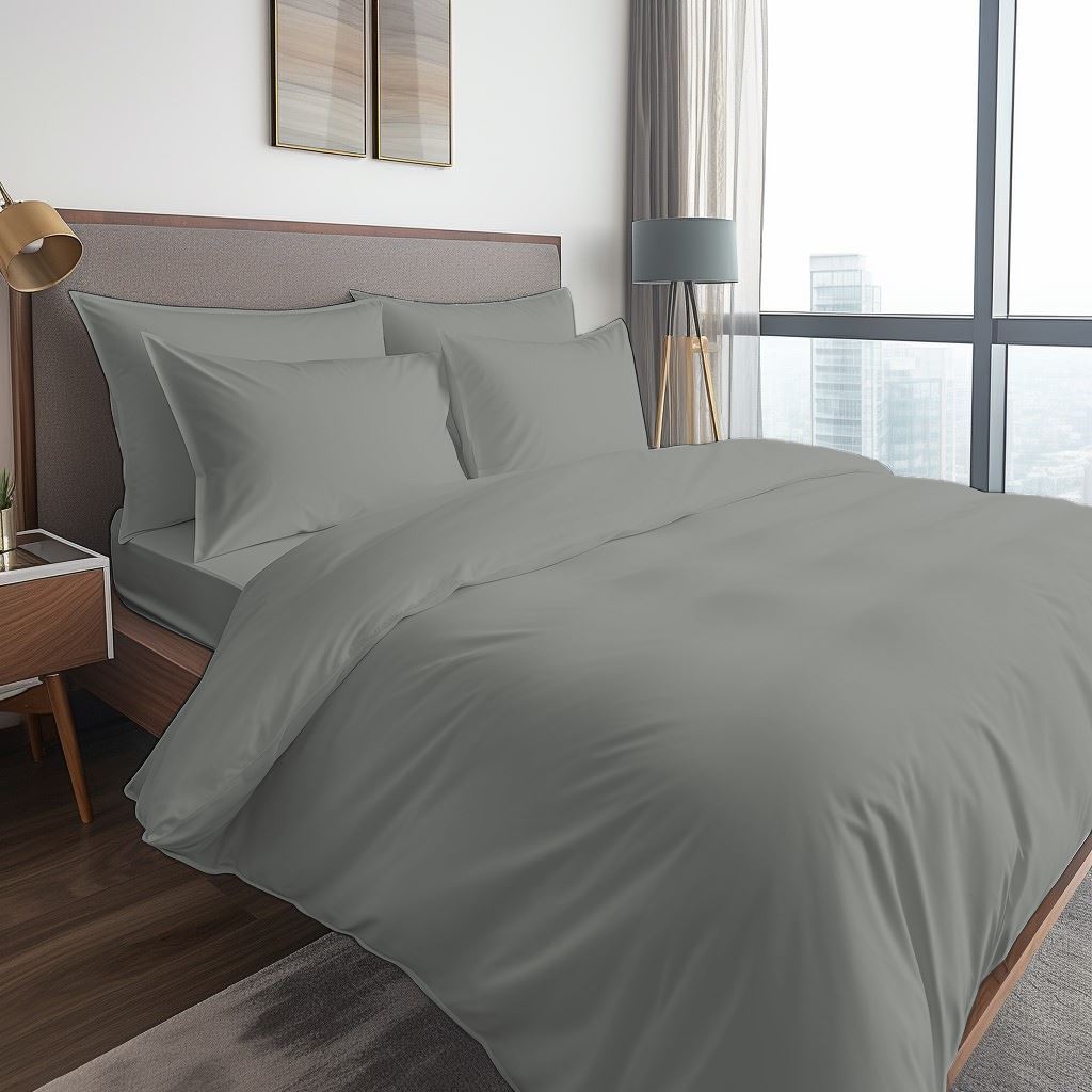 מצעים כותנה פרקל אפור בהיר. בד מצעי הפרקל הינו עמיד ורך ומורכב 100% כותנה טבעית ובצפיפות גבוהה של כ- 200 חוטים באינץ.