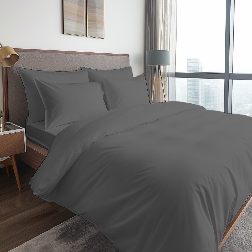 מצעים כותנה פרקל אפור כהה. בד מצעי הפרקל הינו עמיד ורך ומורכב 100% כותנה טבעית ובצפיפות גבוהה של כ- 200 חוטים באינץ.