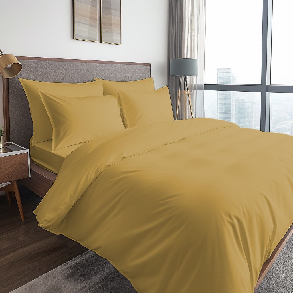 מצעים כותנה פרקל חרדל. בד מצעי הפרקל הינו עמיד ורך ומורכב 100% כותנה טבעית ובצפיפות גבוהה של כ- 200 חוטים באינץ.