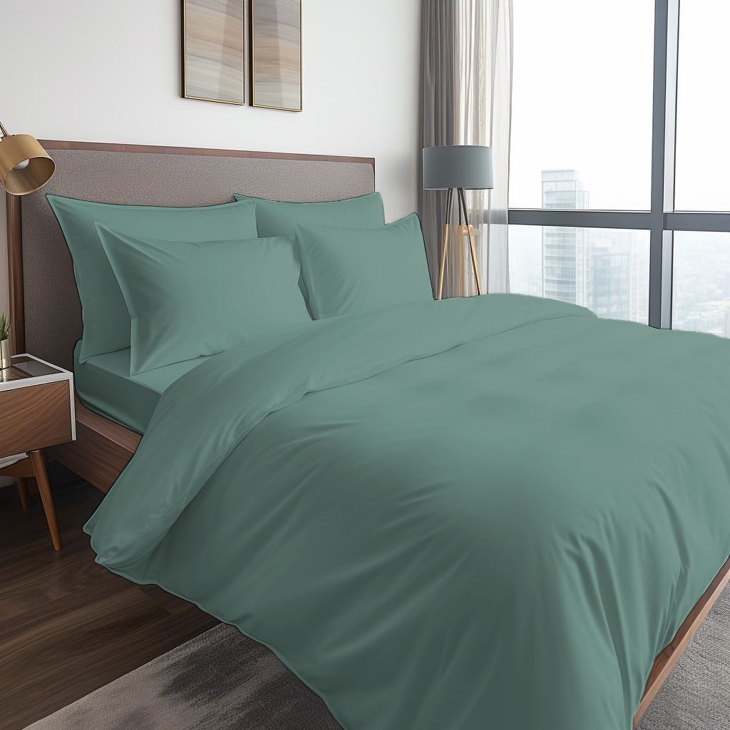 מצעים כותנה פרקל ירוק. בד מצעי הפרקל הינו עמיד ורך ומורכב 100% כותנה טבעית ובצפיפות גבוהה של כ- 200 חוטים באינץ.